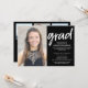 The front includes one large photo with a trendy script over the photo. The back includes 3 photos with an option to add a grad party invitation.