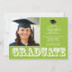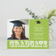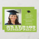 Start your event off right with our modern graduate lime green photo graduation party invitation. Design features the word "graduate" in white set on a lime green background with a grad cap with tassel. Perfect graduation invitation for a high school graduation or college graduation. Just fill in your information, add your photo and you're all set to go. Visit our shop for a large assortment of trendy & stylish graduation invitations in a large assortment of school colours!