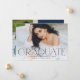 Announce your high school or college graduate's graduation with this modern graduation announcement. The graduation announcement displays "Graduate" in trendy navy blue lettering with the graduation year displayed inside of the letter 'd'. Personalise the front of the announcement with the graduate's horizontal senior photo, name, and school. The announcement reverses to feature an additional photo with space for your custom announcement/message.