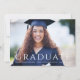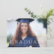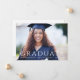 A simple modern card to announce a very proud moment. The front features GRADUATE in simple white typography and the graduates photo. Personalise with the graduates name, graduating year and school. The reverse side allows for a personal message