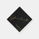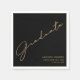 Modern, personalised, custom colour graduation party paper napkins featuring an elegant champagne gold handwritten script typography GRADUATE title design, your graduate's name, school and class year or other custom text in your choice of background colour (shown in black). Change the colour in EDIT to a school colour or coordinating party theme colour. ASSISTANCE: For help with design modification/personalisation, transferring the design to another product, or you'd like coordinating items, contact the designer BEFORE ORDERING via Zazzle Chat or makeitaboutyoustore@gmail.com.