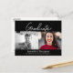 Introducing the "Modern Graduate Script Then and Now Grad Photo Announcement Postcard," a beautifully designed announcement that captures the essence of the graduate's journey from their earliest years to their moment of achievement. This postcard, framed with a sleek black border, offers a unique way to showcase the transformation of the grad with a then and now photo feature. A baby or toddler photo, to which a black and white filter is automatically applied, contrasts beautifully with a current photo of the graduate, celebrating their growth and success.