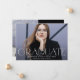 Announce your high school or college graduate's graduation with this modern graduation announcement. The graduation announcement displays "Graduate" in trendy white lettering with the graduation year displayed inside of the letter 'd'. Personalise the front of the announcement with the graduate's horizontal senior photo, name, and school. The announcement reverses to feature an additional photo with space for your custom announcement/message.