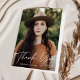 Modern photo graduation thank you card featuring the graduate's vertical photo with "thank you" in a handwritten white calligraphy script overlay. Personalize the front of the graduation thank you card by adding the graduate's name and graduation year. The inside of the folded graduation thank you card features a trendy black and white dotted geometric pattern on the left with your typed or handwritten message on the right.