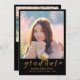 Send your family and friends a unique personalised photo graduation announcement to wow them. This modern template design features your photo framed in black and below in faux gold script is the word "Graduate" with your name, school and year to personalise accented by a black graduation cap. The back of the card has a 2nd photo with graduation details from parents. Designed by Susan Coffey.