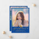 Modern Graduation 2 Photo Gold Script Cap on Blue Announcement