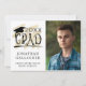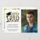 Announcement the graduation achievement of your son or daughter with this graduation announcement card featuring 2 photos of your graduate, a modern hand lettered brush calligraphy typography title design GRAD with class year and graduation cap or mortarboard in black and gold against an editable white background with name and school. The back offers a place to add your custom text about your graduate's achievements and plans. ASSISTANCE: For help with design modification/personalisation, colour change, transferring the design to another product or if you would like coordinating items, contact the designer BEFORE ORDERING via the Zazzle Chat MESSAGE tab or email at makeitaboutyoustore@gmail.com.