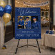 A customizable graduation design with navy blue background template that lets you add your own photos and details to create a meaningful and memorable tribute.