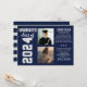Nice Graduate Invitation Model with high school graduate style with this graduation invitation with 2 photos and party invitation. The two-sided "Now and After" card shows two Graduate photos (one current and one older of his first day of school) with a simple, masculine design with lyrics inspired by sports sweater. The colors navy blue and gold, make this invitation a nice elegant invitation for your graduation of Men or Women **Photo tip: cut your pictures in a square shape before uploading.