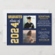Nice Graduate Invitation Model with high school graduate style with this graduation invitation with 2 photos and party invitation. The two-sided "Now and After" card shows two Graduate photos (one current and one older of his first day of school) with a simple, masculine design with lyrics inspired by sports sweater. The colors navy blue and gold, make this invitation a nice elegant invitation for your graduation of Men or Women **Photo tip: cut your pictures in a square shape before uploading.