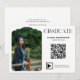 Celebrate your achievement with this modern graduation announcement card, featuring a clean white layout, elegant typography, and a stylish arch photo frame. The built-in QR code adds a unique, interactive touch—perfect for sharing your graduation video or memories. Personalize with your name, photo, and class year for a polished, contemporary keepsake.