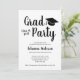 Modern Script grad party invitation for the graduation class of 2025 or any year. Edit it and personalise it with a name, the high school or college the graduate is from, and any needed information. Design in black and white with a cap.