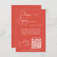 A modern response card in trendy bright orange/grapefruit red colour. Modern typography with handwritten style text. Let your guest respond by visiting website by scaning this QR code.