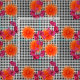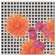 Bold Graphic Pink Orange Flowers Black and White Check Print Fabric. Available in 56" wide cotton, twill, polyester or linen. Buy by the yard. Great for home decor projects for drapes, pillows or duvet covers. Designed by Staging Your Nest.
