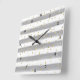 Modern Gray, White, Gold Stripes, Confetti Clock