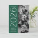 Honor your graduate with this rich green 3 photo graduation announcement featuring a bold vertical “2026” design that makes a confident statement. Three favorite photos are arranged in a clean stacked layout, creating a balanced and modern presentation that highlights the graduate’s personality. Customize with the graduate’s name and school for a personalized finish. The reverse side features a coordinating geometric design that completes the overall look. A polished photo collage graduation announcement designed for both high school and college seniors celebrating the Class of 2026.