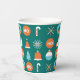 Modern Green and Orange Christmas Symbols Pattern Paper Cups