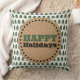 This modern and simple throw pillow features green pine trees on a white background with Happy Holidays text in a kraft paper polka dot circle. Click the personalise button to customise the text in this design. These items coordinate with our other items in the collection.