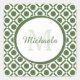 Modern Green and White Geometric Monogrammed Name Square Sticker