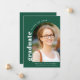 A simple modern green white graduation announcement card to celebrate the new high school graduate. The design features your favourite photo framed within an arch with a bold typography. Personalise with your name and high school.