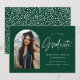Trendy graduation announcement featuring the graduate's photo framed by a green arch with "Graduate" in a white handwritten script. Personalise the front of the arch graduation announcement card by adding the graduate's name, graduation year, school name, and future plans. The photo graduation announcement reverses to display a green and white dotted pattern. The announcement is suitable for both high school and college graduates.