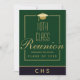 Send your 10th class reunion classmates our modern flat card invitation. This elegant design template features a green and black background with faux gold typography that reads "10th Class Reunion" with your school name and year to personalise Below is your school's monogram. The back of the card has more of your celebration details for you to customise. Designed by world renowned artist ©Tim Coffey.