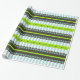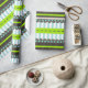 Very stylish pattern of stripes, polka dots, dashed and scalloped lines. This unique pattern consists of colours like lime green, dark brown, mint blue and white.
