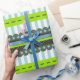 Modern Green, Blue, Brown Stripes & Dots Pattern Wrapping Paper