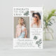 Modern White Green Butterfly Photo Graduation Party Invitations features the simple text "Congrats to the Grad" accented with a flower and butterflies with two of your favourite photos and personalised with name and graduation party details in elegant script typography. Personalise by editing the text in the text boxes provided and adding your favourite photos. Designed by ©2023 Evco Studio www.zazzle.com/store/evcostudio