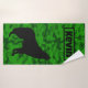 This bathroom towel set features a modern green camo pattern with a bold black wolf silhouette. Each towel is personalised with a monogram, adding a rugged and unique touch to your bathroom decor. Combining both style and functionality, these towels offer a distinctive, masculine flair while providing softness and absorbency for everyday use.