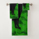 Modern Green Camo Black Wolf Silhouette Monogram | Bath Towel Set