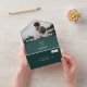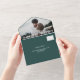 Modern bold and minimalist casual initials photo wedding, perfect small wedding ceremony. Add your couple photos and initials , a simple white and dark forest green wedding theme.All in one wedding invite, add your details, rsvp.
