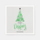 Modern green ball Christmas tree, black stars, and the words Merry Christmas in chic lettering on a pale grey background, personalise these holiday napkins for any Christmas occasion, your home or give as a hostess gift. MATCHING items in our store.