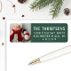 Holiday address labels feature a favourite Christmas photo with modern white return address and festive hunter / pine green background. Colours can be completely customised to coordinate with your photo.