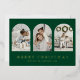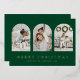 Modern Green Elegant Arch Photo Collage Christmas Foil Holiday Card