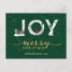 Modern Green Elegant Gold Script JOY Snow Overlay Holiday Postcard