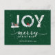 Modern Green Elegant Script JOY White Snow Overlay Holiday Postcard