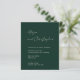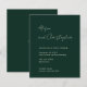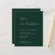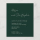This modern green wedding invitation features elegant handwritten script paired with clean, structured typography — perfect for black-tie, evening, hotel, or winter weddings.
