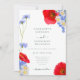 Beautiful hand painted watercolor botanical summer wildflowers in green blue yellow hues. Flowers including cornflowers, daisies, poppies and forget me nots. Easy to use template with modern elegant typography script. Perfect for a unique flower botanical emerald green themed summer or spring wedding. Original artwork by artist Catherine Sweetman