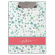 Modern mint and coral floral pattern clipboard with an elegant hand lettered script name on a chic coral ribbon. Personalise with your name.