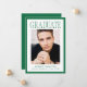 Share your graduate’s achievement with this Modern Green Frame Photo Graduation Announcement, featuring a rich green border that adds a timeless, collegiate-inspired touch to the clean layout. “Graduate” is displayed in refined serif lettering across the top, creating a strong yet sophisticated statement above the graduate’s vertical photo centered on the design. Their name, school, and graduation year are arranged below in a crisp, balanced format that keeps the focus on both the portrait and the milestone. The reverse side showcases a horizontal photo with space for personalized text, making it ideal for including graduation party details, future plans, or a heartfelt thank you message. Designed for both high school and college graduates, this modern photo graduation card offers a polished and distinguished way to commemorate this important accomplishment.