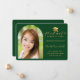 Modern Green Gold Cap Script Arch Photo Graduation Announcement