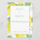 Lovely modern Save the Date with yellow lemon and green foliage; with green scripts. Customise it with your own info.