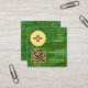 This modern green and gold marble square business card is for professionals and entrepreneurs. The front side has a customisable QR code that you can replace with your own. There is also a logo placeholder where you can add a logo or photo of yourself or your business. There is text in for your name, title and company, plus email, phone, handle and address. On the back is customisable elegant script for adding a tagline or personalised message and below that is where you can enter your web address.