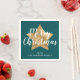 Personalised Modern Green Gold Star Merry Christmas Napkins.