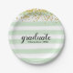 Sleek and stylish Modern Green Stripe & Gold Confetti Graduate Graduation Party Plates. Has matching accessories. Typography is customisable and you can add a photo of your graduate.
