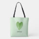 Modern green heart shape plant leaf on light green Tote Bag. Text can be personalised..