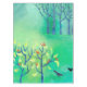 Painting of two blackbirds in a green field in spring. A hedgerow is coming into leaf and scattered with blossom, and in the background are some trees at the edge of the forest. Original art by Nic Squirrell.