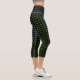 Modern Green Laurel Leaf Pattern on Black Capri Leggings