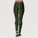 Modern Green Laurel Leaf Pattern on Black Leggings